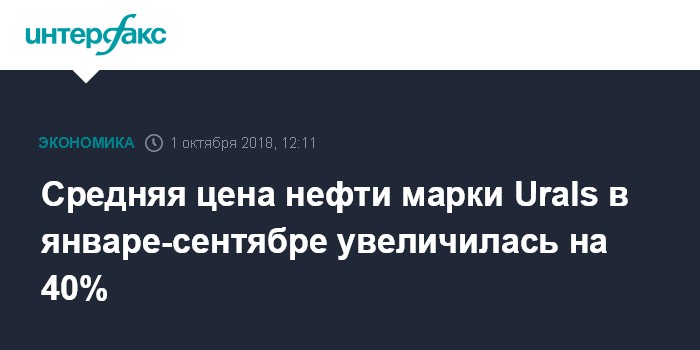 Москва. 1 октября. INTERFAX.RU - Средняя цена нефти марки Urals в январе-сентябре 2018 года сложилась в размере $70,61 за баррель, говорится в сообщении Минфина РФ.
