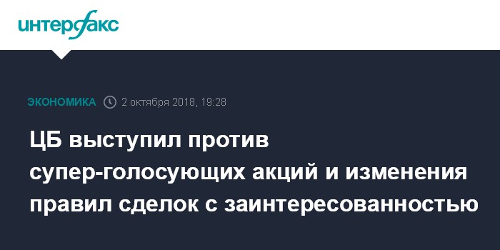 ЦБ выступил против супер-голосующих акций и изменения правил сделок с заинтересованностью