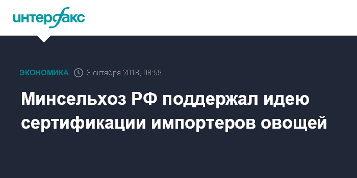 Москва. 3 октября. INTERFAX.RU - Минсельхоз РФ считает целесообразным введение сертификации импортеров овощей для поддержания отечественного овощеводства.