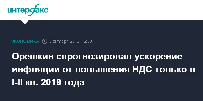 Орешкин спрогнозировал ускорение инфляции от повышения НДС только в I-II кв. 2019 года