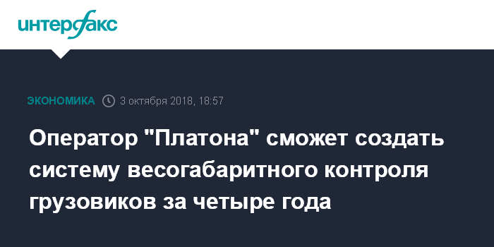 Москва. 3 октября. INTERFAX.RU - Оператор системы взимания платы с грузовиков "Платон" ООО "РТ-Инвест Транспортные Системы" (РТИТС) готов создать автоматическую систему весогабаритного контроля (АСВГК) для грузовиков за четыре года, сообщил журналистам генеральный директор компании Антон Замков в кулуарах конференции "Грузовые автоперевозки: вызовы и возможности".