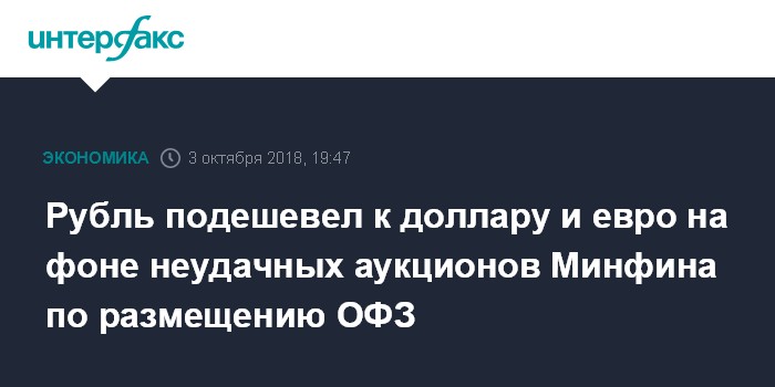 Рубль подешевел к доллару и евро на фоне неудачных аукционов Минфина по размещению ОФЗ