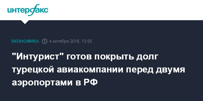 "Интурист" готов покрыть долг турецкой авиакомпании перед двумя аэропортами в РФ