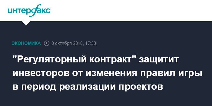 "Регуляторный контракт" защитит инвесторов от изменения правил игры в период реализации проектов