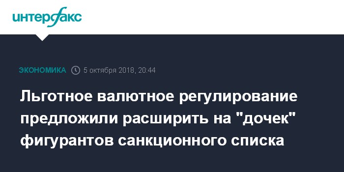 Льготное валютное регулирование предложили расширить на "дочек" фигурантов санкционного списка