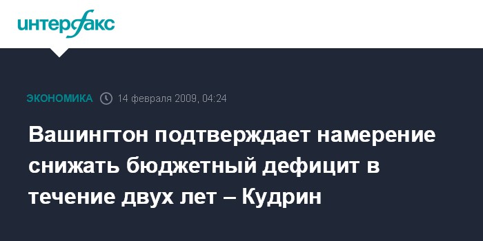Вашингтон подтверждает намерение снижать бюджетный дефицит в течение двух лет – Кудрин