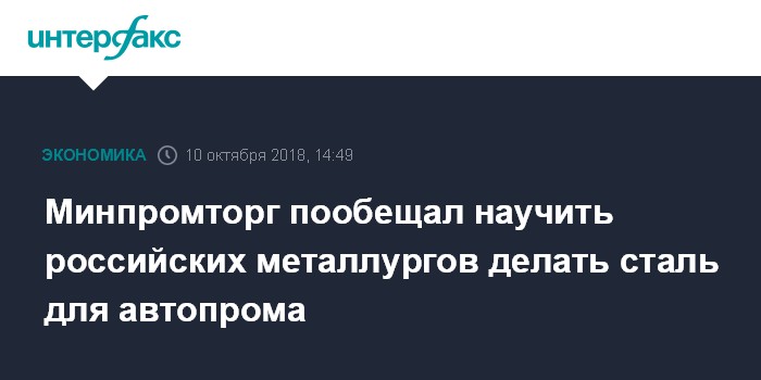 Минпромторг пообещал научить российских металлургов делать сталь для автопрома