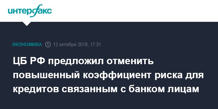 ЦБ РФ предложил отменить повышенный коэффициент риска для кредитов связанным с банком лицам