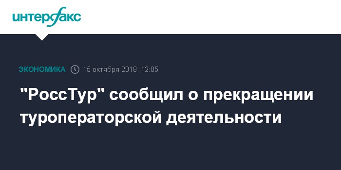 "РоссТур" уведомил партнерские агентства о прекращении туроператорской деятельности с 15 октября. Ранее источники на туроператорском рынке сообщили, что центр бронирования также планирует заявить о полном прекращении деятельности на этой неделе. Компания может перестать работать и в качестве агентства, и как туроператор, так как найденный инвестор отказался погасить долги ЦБ", - говорится в сообщении АТОР.