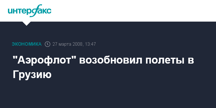 Тбилиси. 27 марта. INTERFAX.RU - ОАО "Аэрофлот - российские авиалинии" возобновило полеты в Грузию, сообщили "Интерфаксу" в тбилисском представительстве компании.