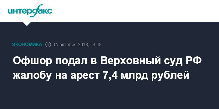Офшор подал в Верховный суд РФ жалобу на арест 7,4 млрд рублей