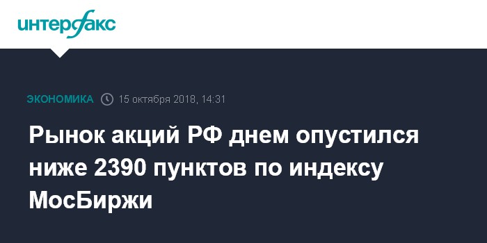 Рынок акций РФ днем опустился ниже 2390 пунктов по индексу МосБиржи