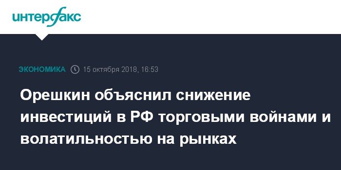 Орешкин объяснил снижение инвестиций в РФ торговыми войнами и волатильностью на рынках