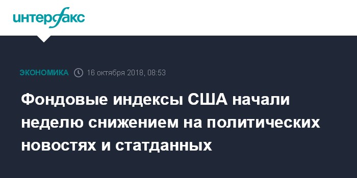 Фондовые индексы США начали неделю снижением на политических новостях и статданных