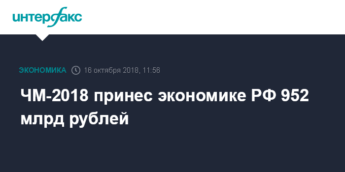 ЧМ-2018 принес экономике РФ 952 млрд рублей