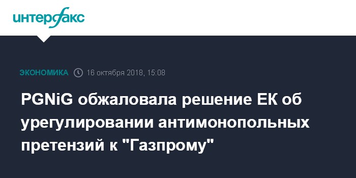 ЕК официально опубликовала свое решение 17 июля. Стороны могли обжаловать решение ЕК в течение двух месяцев - до 17 сентября. Ранее PGNiG говорила о намерении обжаловать решение ЕК, выказывая недовольство тем, что в отношении "Газпрома" не был наложен штраф.