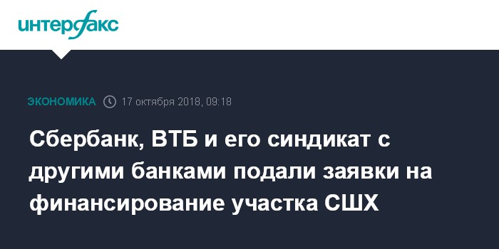 Сбербанк, ВТБ и его синдикат с другими банками подали заявки на финансирование участка СШХ