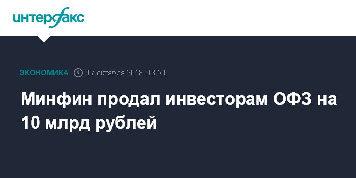 Минфин продал инвесторам ОФЗ на 10 млрд рублей