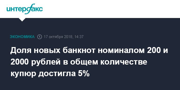 Доля новых банкнот номиналом 200 и 2000 рублей в общем количестве купюр достигла 5%