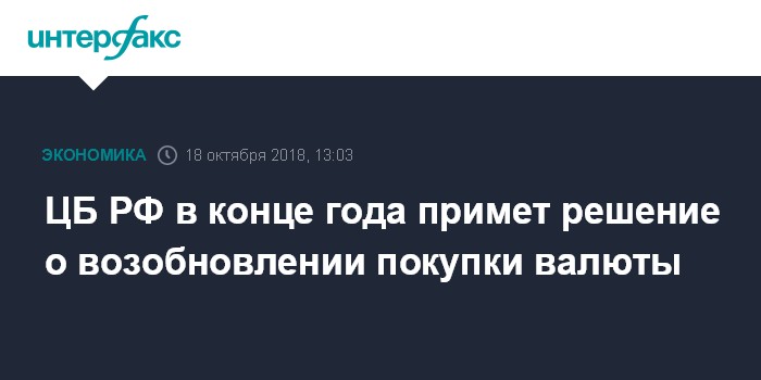 ЦБ РФ в конце года примет решение о возобновлении покупки валюты