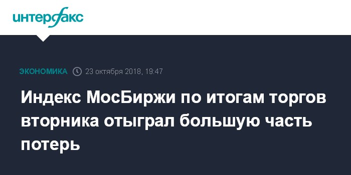 Индекс МосБиржи по итогам торгов вторника отыграл большую часть потерь