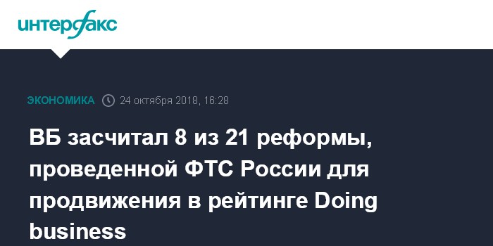 ВБ засчитал 8 из 21 реформы, проведенной ФТС России для продвижения в рейтинге Doing business