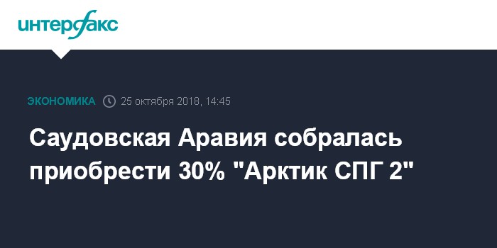 Москва. 25 октября. INTERFAX.RU - Саудовская Аравия претендует на 30% "Арктик СПГ 2", сообщил в интервью информационному телеканалу Al Ekhbariya министр энергетики Саудовской Аравии Халид Аль-Фалих.