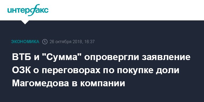 ВТБ и "Сумма" опровергли заявление ОЗК о переговорах по покупке доли Магомедова в компании