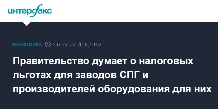 Как сообщает пресс-служба правительства России по итогам рассмотрения вопроса о развитии производства СПГ в РФ, также этим исполнителям поручено проработать вопрос стимулирования российских производителей оборудования для производства сжиженного природного газа путем установления нулевой ставки по налогу на прибыль и налогу на имущество на 12 лет.