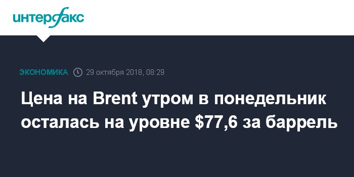 Цена на Brent утром в понедельник осталась на уровне $77,6 за баррель