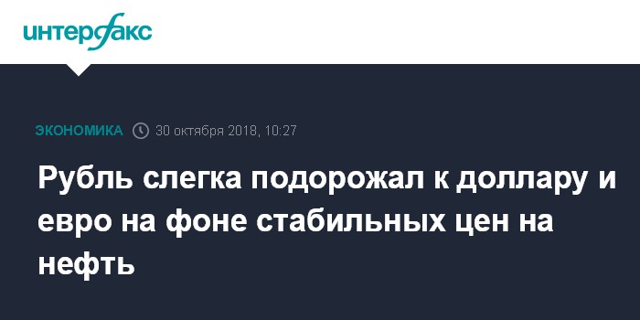 Москва. 30 октября. INTERFAX.RU - Доллар США и евро незначительно снижаются на Московской бирже во вторник утром, рубль слегка повышается к бивалютной корзине на фоне небольших изменений котировок нефти.