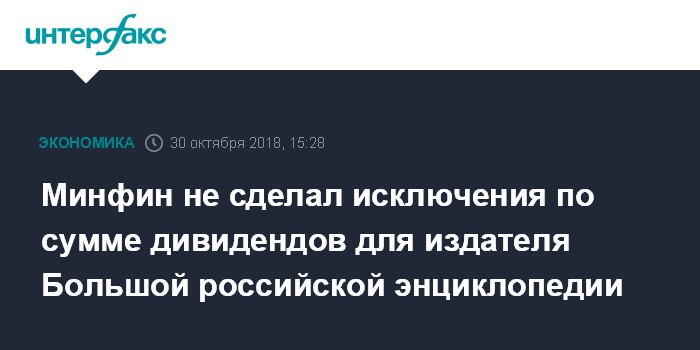Минфин не сделал исключения по сумме дивидендов для издателя Большой российской энциклопедии