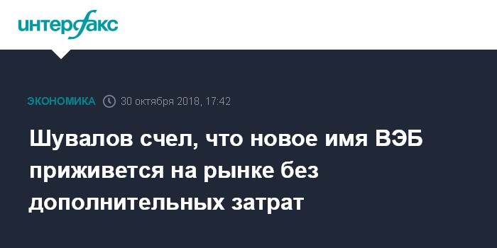 Шувалов счел, что новое имя ВЭБ приживется на рынке без дополнительных затрат