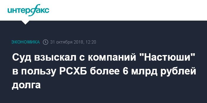 Суд взыскал с компаний "Настюши" в пользу РСХБ более 6 млрд рублей долга