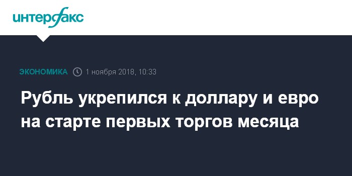 Как отмечают эксперты "Интерфакс-ЦЭА", рубль на старте первых торгов месяца укрепляется к доллару немного более быстрыми темпами, нежели к евро. Участники рынка отыгрывают отскок пары "евро-доллар" на глобальном рынке после того, как накануне пара вновь достигла отметки $1,13 впервые с августа. Участники торгов фиксируют прибыль в ожидании результатов промежуточных выборов в Конгресс США на следующей неделе.