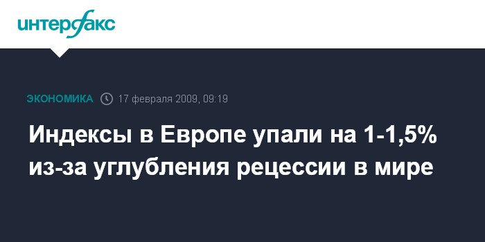 Москва. 17 февраля. INTERFAX.RU - Фондовые индексы в Европе снизились в понедельник на 1-1,5% из-за информации о рекордном падении ВВП Японии в прошлом квартале и на неблагоприятных прогнозах для британской экономики, сообщило агентство Bloomberg. Негативное влияние на рынок оказало также то, что по итогам встречи министров финансов и глав центральных банков стран G7 не были озвучены конкретные шаги для предотвращения рецессии.