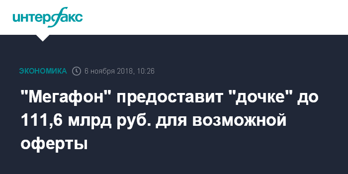 "Мегафон" предоставит "дочке" до 111,6 млрд руб. для возможной оферты