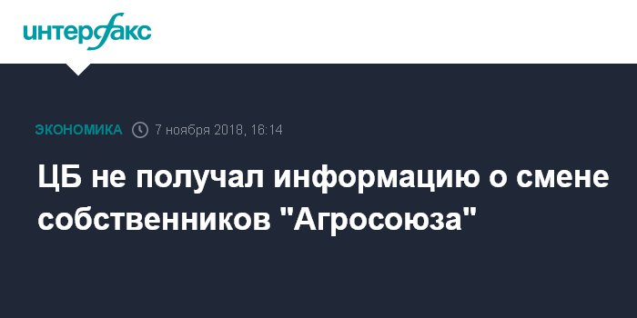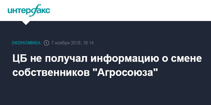 ЦБ не получал информацию о смене собственников "Агросоюза"