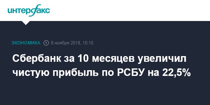 Сбербанк за 10 месяцев увеличил чистую прибыль по РСБУ на 22,5%