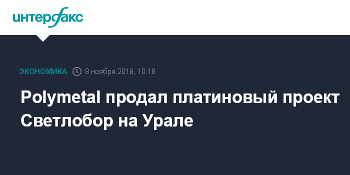 Москва. 8 ноября. INTERFAX.RU - Polymetal продал 100% платинового геологоразведочного проекта Светлобор (Свердловская область) группе независимых российских покупателей, сообщила компания.