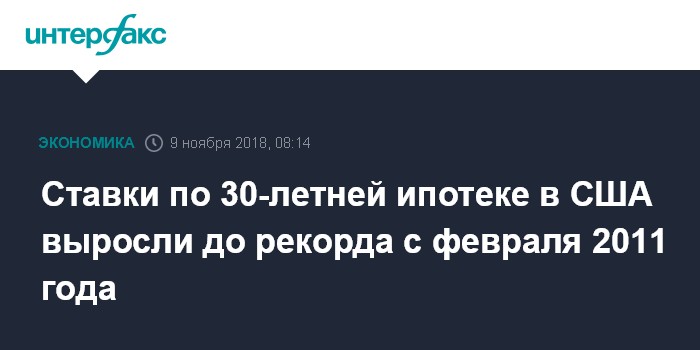 Москва. 9 ноября. INTERFAX.RU - Ставки ипотечного кредитования в США достигли максимального уровня с февраля 2011 года на новостях о хорошей ситуации на рынке труда страны.