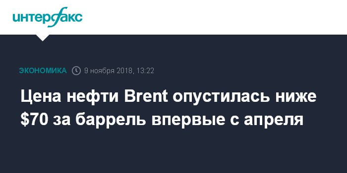 Цена нефти Brent опустилась ниже $70 за баррель впервые с апреля