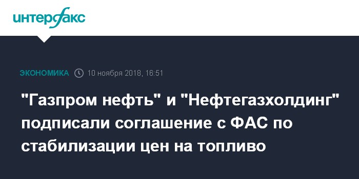 "Газпром нефть" и "Нефтегазхолдинг" подписали соглашение с ФАС по стабилизации цен на топливо