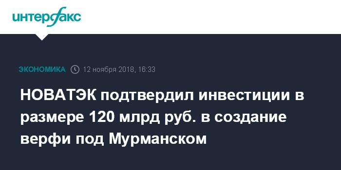 НОВАТЭК подтвердил инвестиции в размере 120 млрд руб. в создание верфи под Мурманском