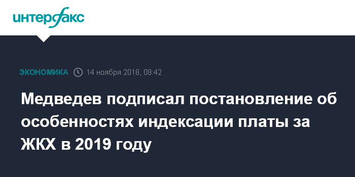 Медведев подписал постановление об особенностях индексации платы за ЖКХ в 2019 году