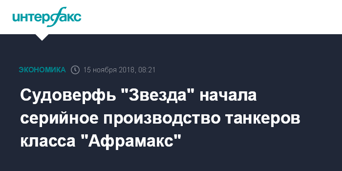 Москва. 15 ноября. INTERFAX.RU - ССК "Звезда" приступил к серийному производству крупнотоннажных судов, предназначенных для перевозки нефти и нефтепродуктов.