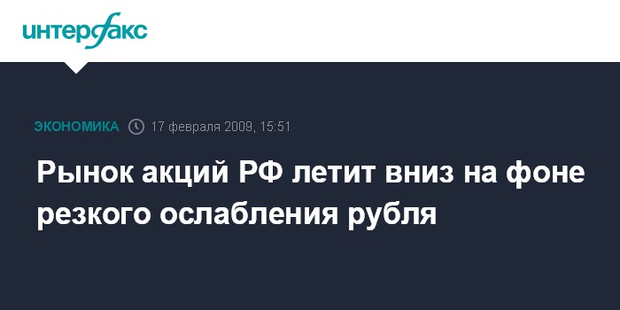 Москва. 17 февраля. INTERFAX.RU - Рынок акций РФ во вторник летит вниз по большинству blue chips на фоне негативной динамики мировых фондовых площадок и нефти, а также резкого ослабления рубля к бивалютной корзине ЦБ РФ, взлетевшей до 40,4 рубля.