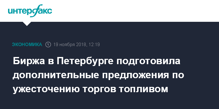 Москва. 19 ноября. INTERFAX.RU - Санкт-Петербургская международная товарно-сырьевая биржа подготовила дополнительные предложения по ужесточению биржевых торгов топливом.