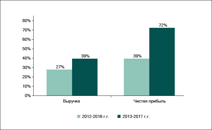 | Прирост выручки | 2012-2016 года | 2013-2017 года |