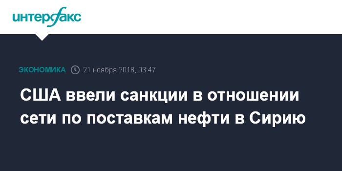 Москва. 21 ноября. INTERFAX.RU - США ввели санкции против международной сети, которая используется Ираном и Россией для поставок нефти в Сирию, сообщил госсекретарь США Майк Помпео журналистам на брифинге.
